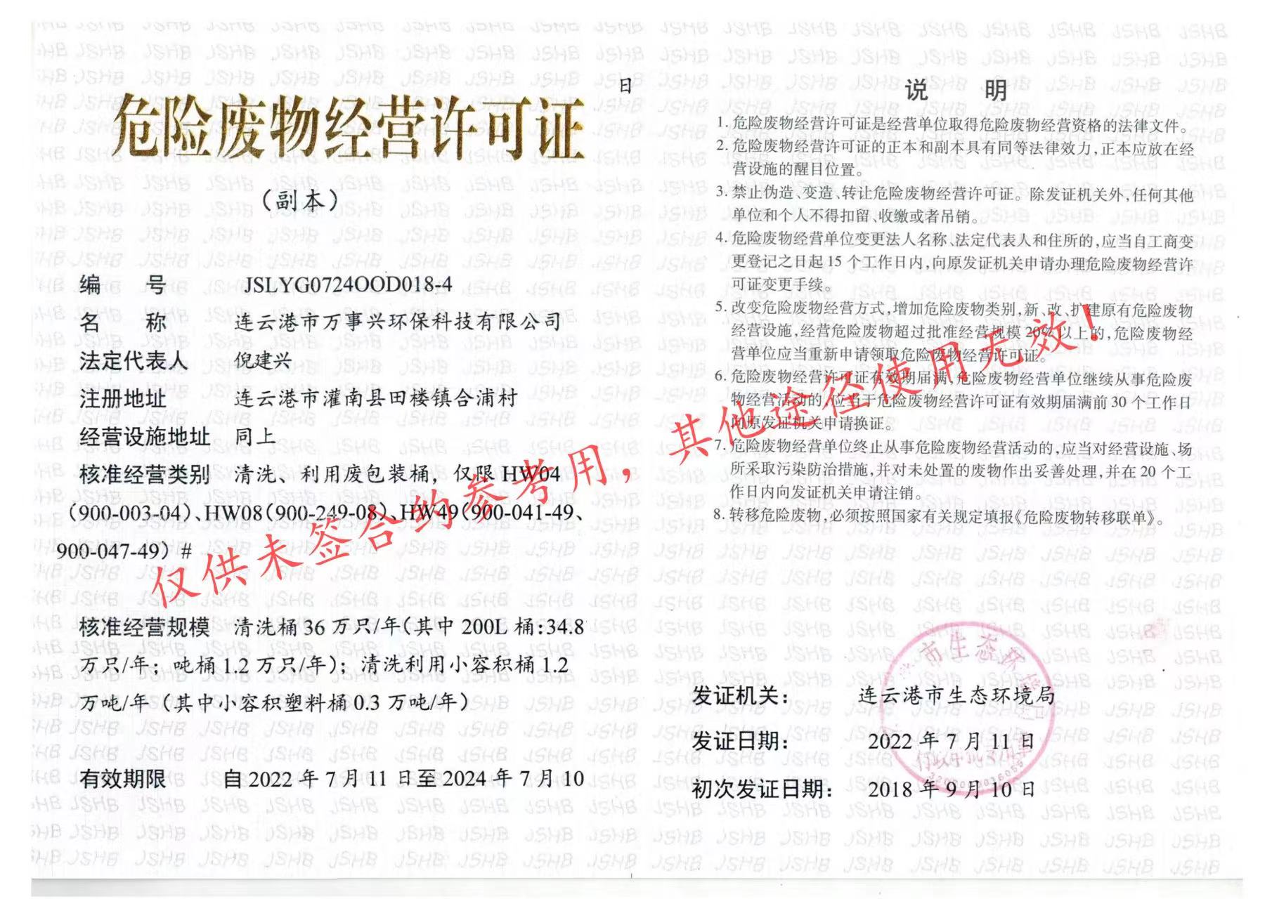 连云港市万事兴环保科技有限主要经营废包装桶的清洗处置等相关业务,欢迎来电咨询!